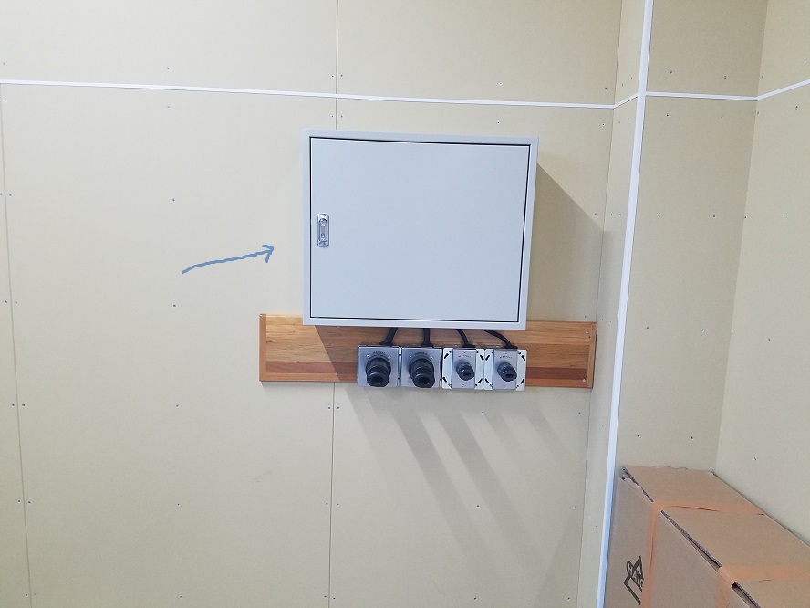 分電盤を取り付けた反対の外壁側にBOXを取り付けました。